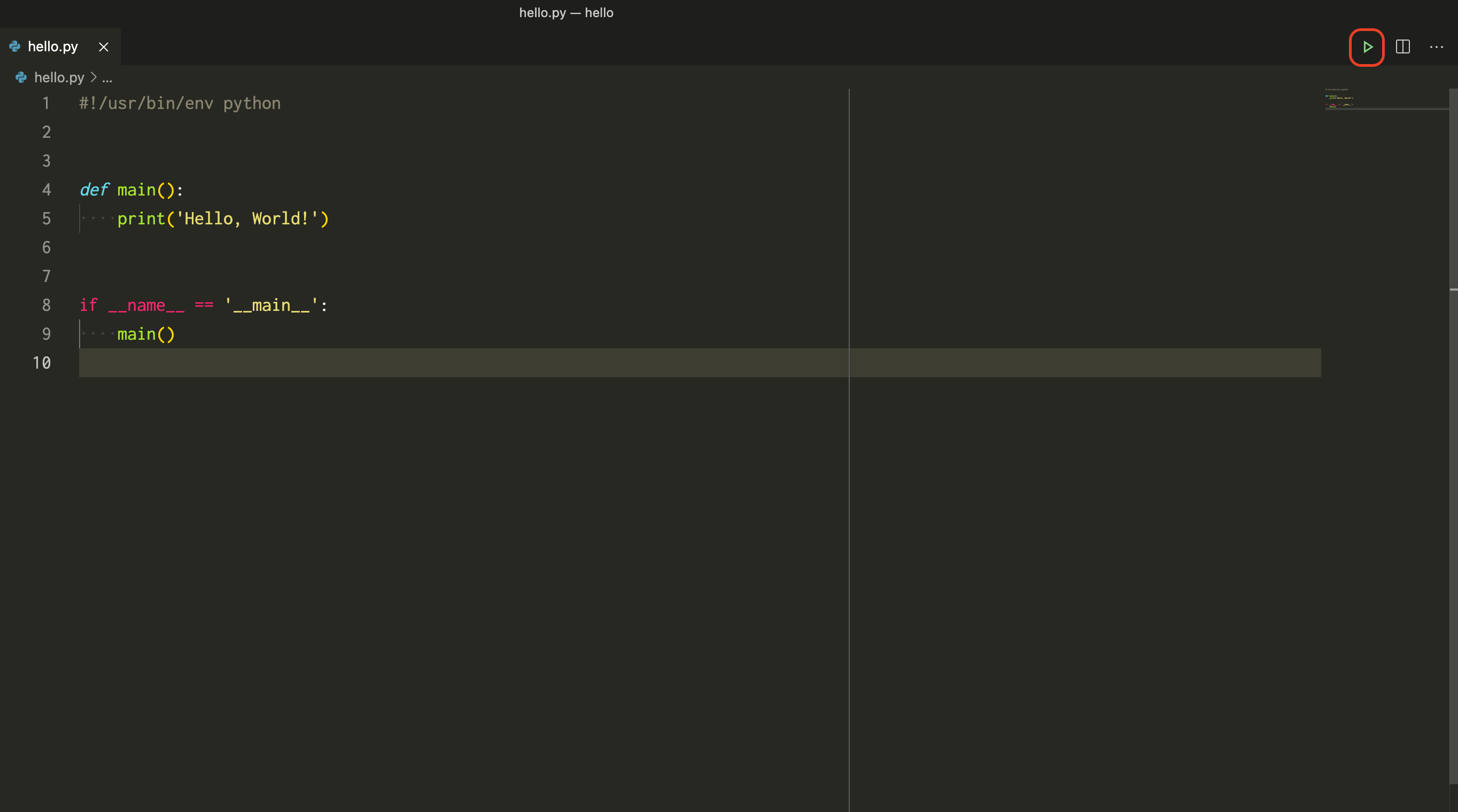 ウィンドウの右上にある再生ボタンをクリックするとプログラムが実行されます。